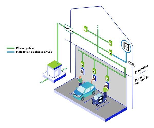 VULKAIN vous propose LA solution pour installer des bornes de recharge en copropriété. Grâce à une prestation "clé en main", vous bénéficiez d’un accompagnement complet : étude technique, gestion administrative, installation de bornes pour copropriétés certifiée IRVE et accès aux aides financières. Cette solution s’adapte à toutes les configurations de parkings collectifs, qu’ils soient en intérieur ou en extérieur.